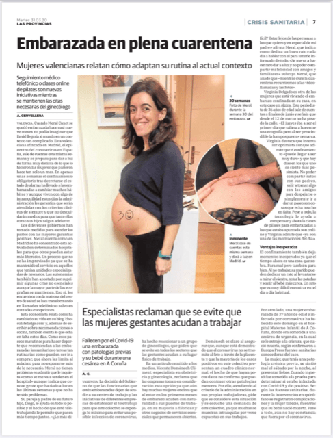 Hoy publico lo escrito estando a punto de dar a luz ya que, justo el día que empecé a escribir el post, me contactan desde Las Provincias por estar escribiendo un artículo sobre cómo las embarazadas estábamos viviendo esa situación de cuarentena. Pensando que se publicaría al día siguiente, la actualidad sobre el virus hacía que pocos artículos tuviesen el suficiente impacto como para ser publicados. Casualidades de la vida, al artículo se publicó el mismo día que llegó David, el 31de marzo de 2020. Os dejo al link al artículo en Las Provincias.es en su versión digital.